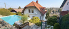 Besonders hervorzuheben sind der beheizbare gemauerte Pool mit Wärmepumpe, der gepflegte Garten mit altem Baumbestand, die beidseitige Zufahrt sowie die Garage mit zusätzlichem Carport. Die erhöhte Lage und der grüne Außenbereich verleihen der Immobilie eine besonders angenehme Wohnatmosphäre.