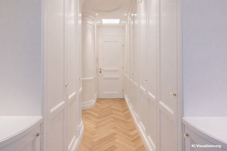 Bereits die barrierefreie Liftzufahrt direkt in die Wohnung unterstreicht den diskreten Premium-Anspruch. Der großzügige Eingangsbereich mit maßgefertigten Einbauten führt in ein durchdachtes Raumkonzept: Gäste- bzw. Arbeitsbereich, elegantes Gäste-WC sowie der Zugang zur beeindruckenden, rund 58 m² großen Hauptterrasse, die den Wohnraum nahtlos ins Freie erweitert.