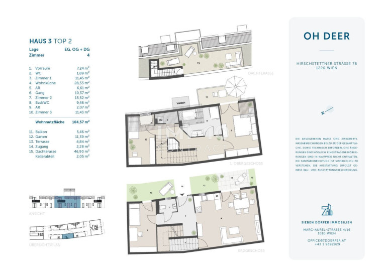 Zum Verkauf gelangt eine hochwertig geplante, moderne 4-Zimmer-Maisonette im Projekt „OH DEER“ in 1220 Wien (Hirschstettner Straße 78). Die Einheit erstreckt sich über Erdgeschoss, Obergeschoss und Dachgeschoss und bietet eine durchdachte Grundrissgestaltung mit attraktiven Freiflächen – ideal für nachhaltige Vermietung und stabile Rendite.