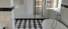 - Masterbad mit offener Wanne (Mineralguss), Doppelwaschbecken, Dusche, hochwertige Armatu-