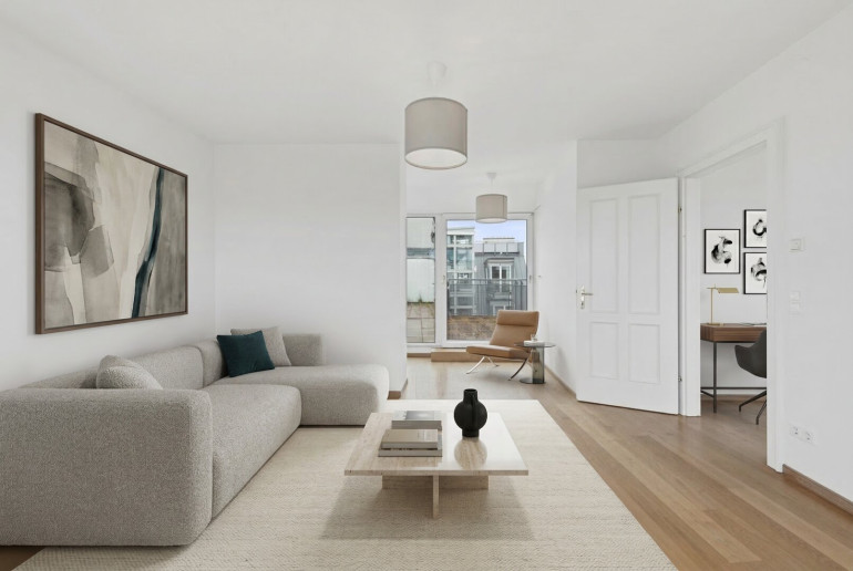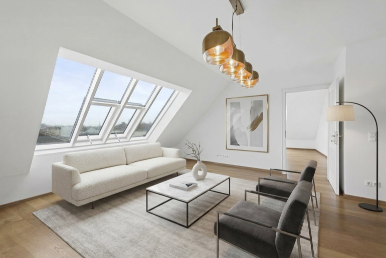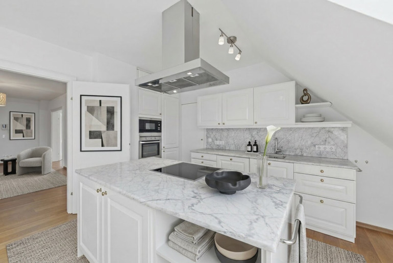 Diese Dachgeschosswohnung überzeugt nicht nur durch ihre durchdachte Raumaufteilung und beeindruckenden Außenflächen, sondern auch durch ihre hochwertige, zeitlose Ausstattung: