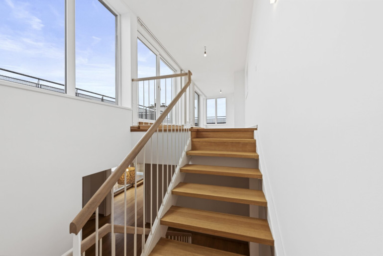 Über eine innenliegende Treppe gelangt man auf die dritte Wohnebene: