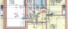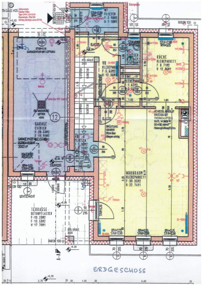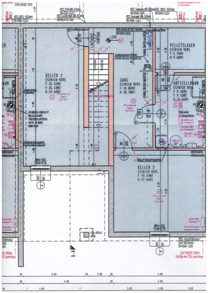 Das Haus teilt sich im Erdgeschoß in Küche, Wohnzimmer, Vorzimmer, Windfang, Abstellraum und WC; im Obergeschoß in 3 Schlafzimmer, Bad und gr. Abstelldachraum. Der Keller teilt sich in Heizraum, Pellettsraum, Vorraum und 2 gr. Abstellräumen. Die Garage ist ebenerdig mit Zugang in den Wohnbereich im Erdgeschoß und auf die Terrasse.
