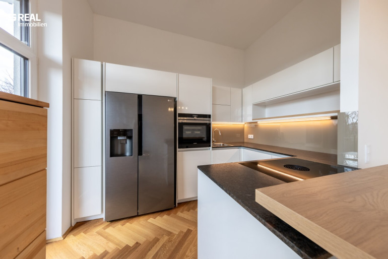- exklusive DAN-Einbauküche mit Markengeräten (Siemens, Bora, AEG) und Naturstein-Arbeitsplatte