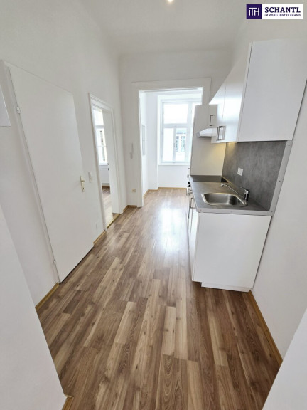 Ihre neue Kleinwohnung wird Sie begeistern und teilt sich in einen hellen Vorraum mit Platz für eine Garderobe, ein separates WC mit Fenster in den Lichthof, ein kuscheliges, hofseitiges Schlafzimmer mit Zugang zu einem stylischen Badezimmer mit Badewanne und Waschmaschinenanschluss, eine separate und voll ausgestattete, neue Küche, sowie ein großzügiges Wohn-Esszimmer.