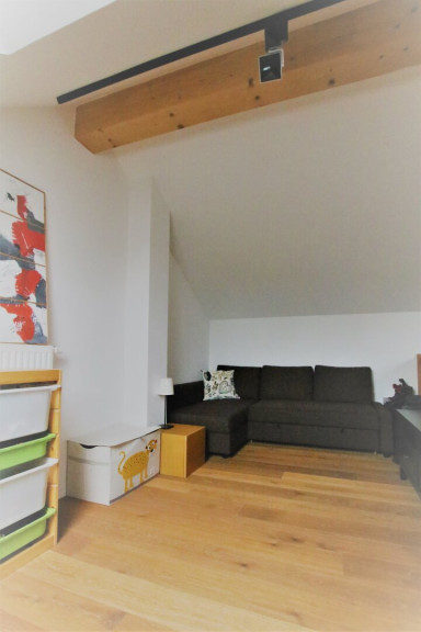 Das ausgebaute Dachgeschoss mit charmanter Mansarde bietet Platz für Ihr Atelier, Home-Office oder Fitness-Studio. Im Außenbereich erwarten Sie ein sonniger Vorgarten sowie der fast 170 m² große Hauptgarten – Ihre private Oase der Regeneration. Ein Carport und ein Freiplatz runden das Angebot ab.