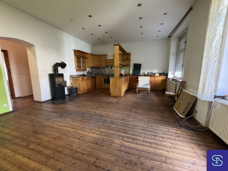 Ausstattung: Neuwertige Hauszentralheizung (Holz, Pellets), Hebebühne EG in den Keller, 2 Fliesenbäder (1x Wanne, 1x Dusche), 2 Einbauküchen, Kunstofffenster, große Einfahrtsmöglichkeit mit Garagentor, separate, großzügige Wohnung im 1. Stock mit Wintergarten und großer Terrasse, renoviertes Hofgebäude mit 2 Etagen als Büro oder Wohnung nutzbar,. Die Liegenschaft verfügt über eine Ladezone vor dem Gebäude.