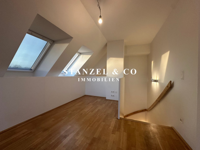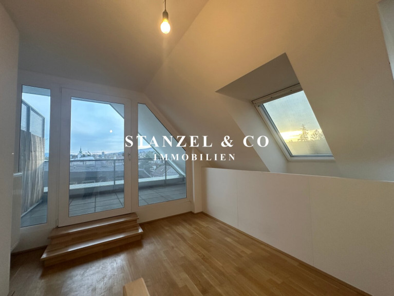 Vom 3m² großen Vorzimmer gelangt man in das sonnige, südseitige 35m² Wohnesszimmer mit offener Küche und anschließender 6m² großer Südterrasse. Die Küche ist mit einem Ceranfeld, Backrohr, Dunstabzug, Mikrowelle, Geschirrspüler und einem Kühlschrank + Gefrierfach ausgestattet. Das Schlafzimmer ist 12m² groß und verfügt ebenfalls über einen Zugang zur schönen 6m² großen, südseitigen Terrasse. Vom Wohnzimmer gelangt man über eine Treppe auf die 11m² große Galerie, die als Arbeitsbereich genutzt werden kann und zur anschließenden 8m² großen Südloggia.