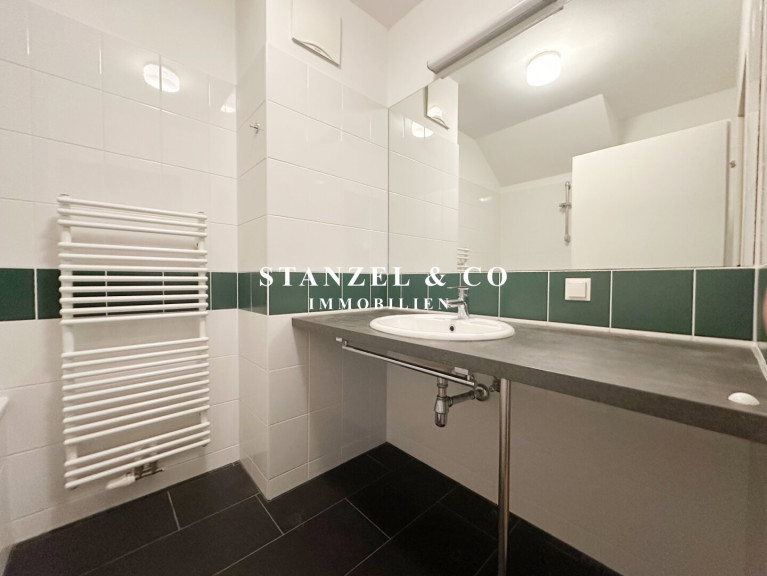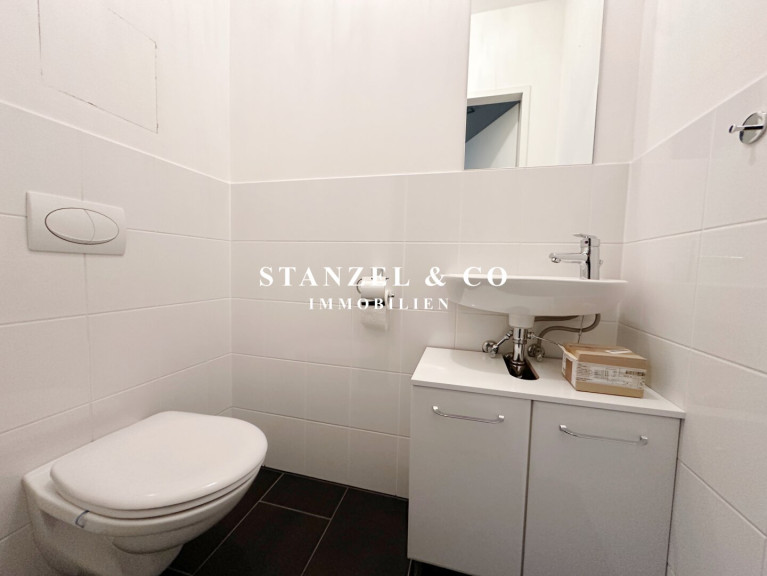 Das Badezimmer ist mit einer Wanne, Waschtisch + fliesenbündigem Spiegel, Handtuchtrockner sowie einer elektrischen Entlüftung ausgestattet ist. Das WC mit Handwaschbecken, Spiegel und elektrischer Entlüftung ist separat. Weiters gibt es einen 2m² großen Abstellraum mit Waschmaschinenanschluss.