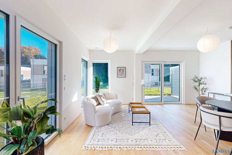 Großzügige Fensterflächen, helle Räume und private Gärten schaffen ein offenes Wohngefühl mit Blick ins Grüne. Die Architektur ist klar und modern, gleichzeitig warm und alltagstauglich – gemacht für Menschen, die Ruhe suchen, aber nicht abgeschieden leben möchten.