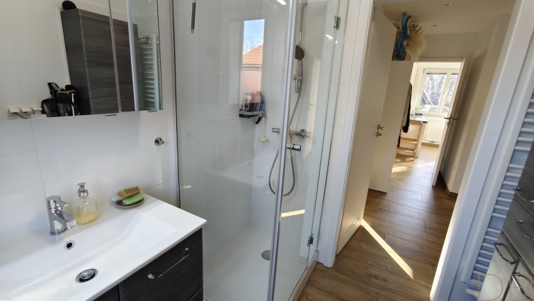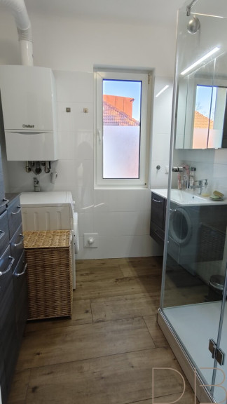 Fliesen, Parkett, Gas, Zentralheizung, Einbauküche, Bad mit Fenster, Garage