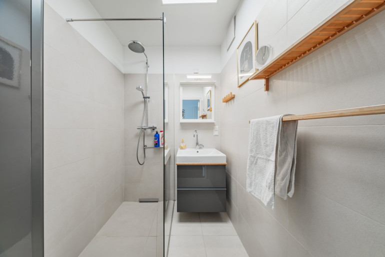 - Badezimmer mit moderner Dusche, separates WC
