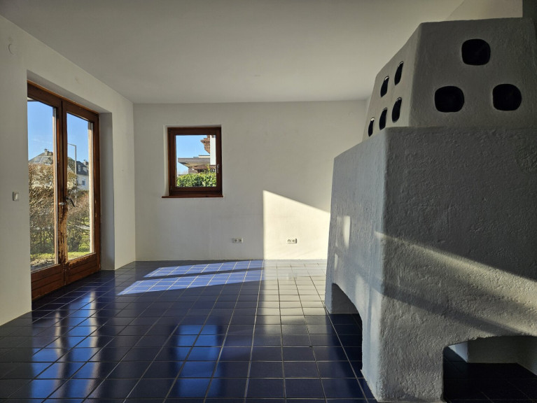 Fußbodenheizung sowie ein Kachelofen im Wohnzimmer, eine große Garage sowie ein charmanter Garten mit vorgelagerter Terrasse ergänzen die Ausstattung dieser gefälligen Wohnimmobilie.
