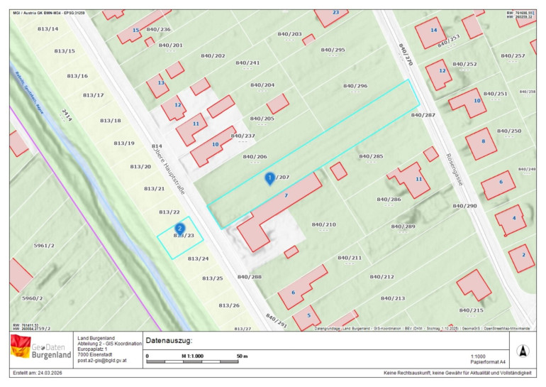 Grundstück 813/23 mit 331 m² Widmung GHg Hausgärten (auf der gegenüberliegenden Straßenseite)