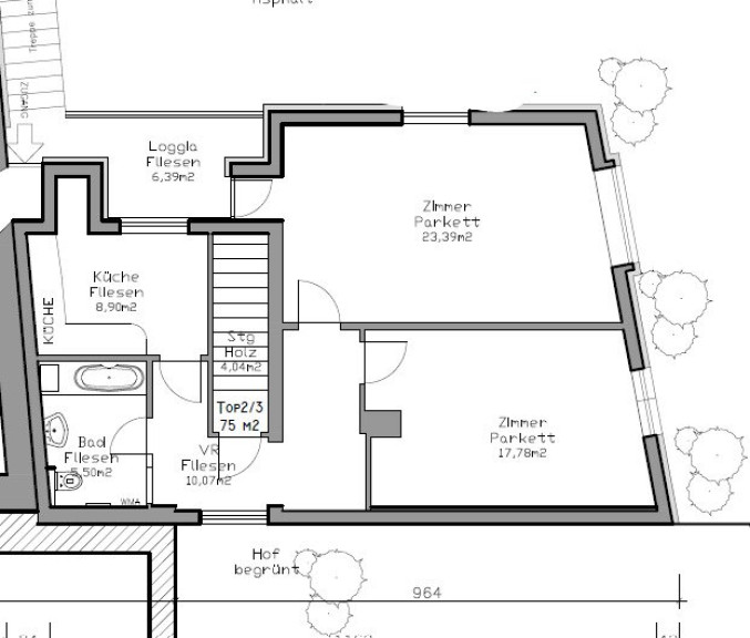 Die Liegenschaft punktet mit einer hervorragenden Lage und Infrastruktur: Direkt gegenüber dem Gebäude befinden sich Haltestellen für Bus und Straßenbahn, wodurch eine optimale Anbindung an das öffentliche Verkehrsnetz gewährleistet ist. Eine Kurzparkzone vor dem Haus erleichtert die Erreichbarkeit zusätzlich. Ein besonderes Highlight ist die direkte angrenzende Lage des hinteren Grundstücksteils an das Naherholungsgebiet Ebelsberger Schlossberg – ein wertvoller Grünraum, der sowohl für Wohn- als auch Gewerbenutzung einen hohen Freizeitwert bietet.