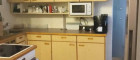 Die gerade aus zu erreichende Wohnküche ist mit einer Einbauküche eingerichtet und verfügt über einen Essplatz. Die Küche verfügt über einen Elektroherd und einen Geschirrspüler
