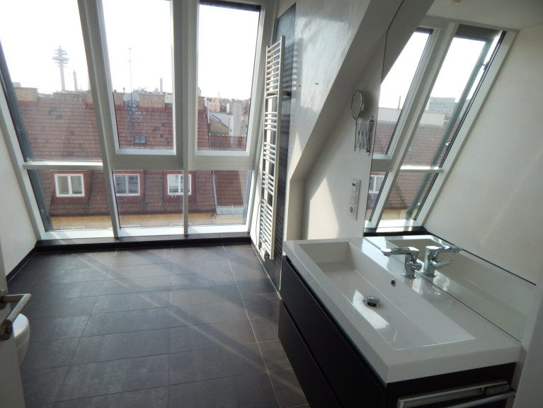 Die Wohnung besticht durch ihre großen Fensterelementen und ist dadurch Sonnendurchflutet, es handelt sich um eine Maissonette-Wohnung auf zwei Ebenen.