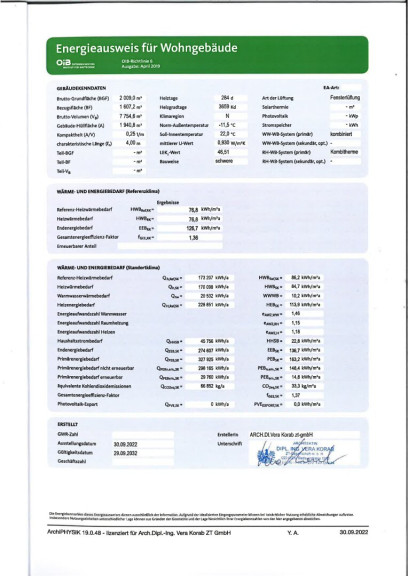 | Heizwärmebedarf: | 76,80 kWh/m²a |