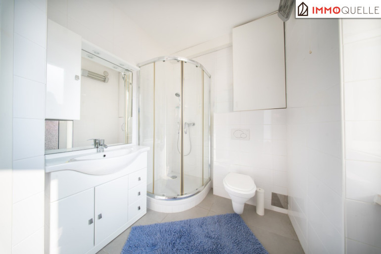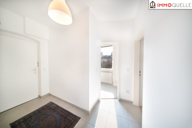 Schon beim Betreten empfängt Sie ein Vorraum, von dem aus sich die Wohnung klar und strukturiert in ihre einzelnen Bereiche gliedert. Linker Hand befindet sich das Badezimmer mit Dusche, WC und einem Fenster nach außen, das für angenehmes Tageslicht sorgt.