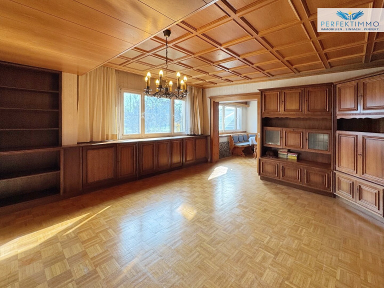 Diese großzügige Liegenschaft mit einer Grundstücksfläche von insgesamt 716 m² bietet eine seltene Gelegenheit für Familien, Naturliebhaber sowie handwerklich geschickte Menschen, die sich den Traum vom eigenen Zuhause nach ihren persönlichen Vorstellungen verwirklichen möchten. Das bestehende Einfamilienhaus überzeugt durch seine solide Holzständerbauweise und eröffnet mit seiner weitläufigen Wohnnutzfläche von rund ca. 149 m² ein beeindruckendes Potenzial für individuelle Gestaltungsmöglichkeiten. Hier finden Menschen mit Visionen, Kreativität und Freude am Selbermachen eine ideale Grundlage, um ein einzigartiges Zuhause in naturnaher Umgebung zu schaffen. Das ursprünglich im Jahr 1950 errichtete Gebäude wurde in den Jahren 1973 und 1974 durch großzügige Anbauten nach Süden, Osten und Westen erweitert. Auch die im Untergeschoss integrierte Garage mit ca. 29 m² entstand im Zuge dieser Erweiterung und wurde ebenso in Holzständerbauweise mit Riegelwabenbauweise ausgeführt. Dadurch entstand ein Gebäude mit bemerkenswerter Raumstruktur und vielseitigen Nutzungsmöglichkeiten. Insgesamt stehen sieben Zimmer zur Verfügung, die ausreichend Platz für Familien mit Kindern, Mehrgenerationenwohnen oder auch für kombinierte Wohn- und Arbeitskonzepte bieten.
