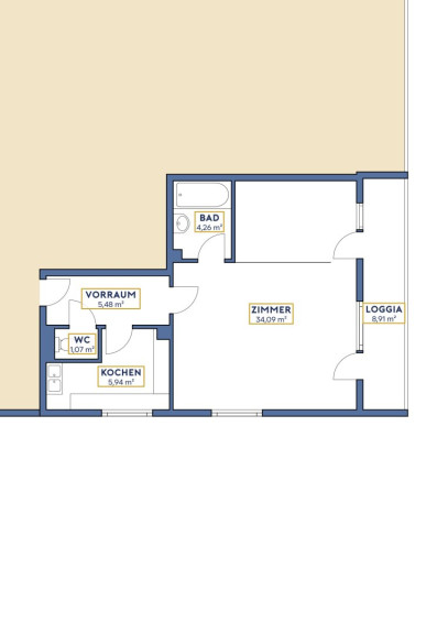 Diese helle 2-Zimmer-Eigentumswohnung mit rund 51 m² Wohnfläche und einer südseitigen Loggia (ca. 9 m²) bietet viel Gestaltungsspielraum für Ihre eigenen Wohnideen.