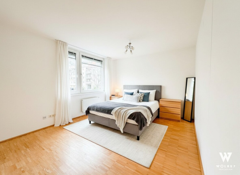 Die Wohnräume sind mit hochwertigen Parkettböden ausgestattet, während Vorraum, Küche und Sanitärbereiche gefliest sind.