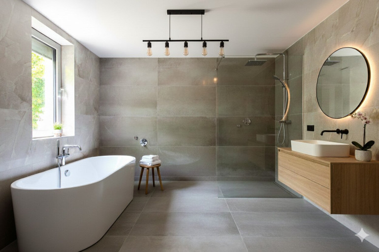 Wellness-Oase: 3 vollwertige Badezimmer mit zeitlosem Design