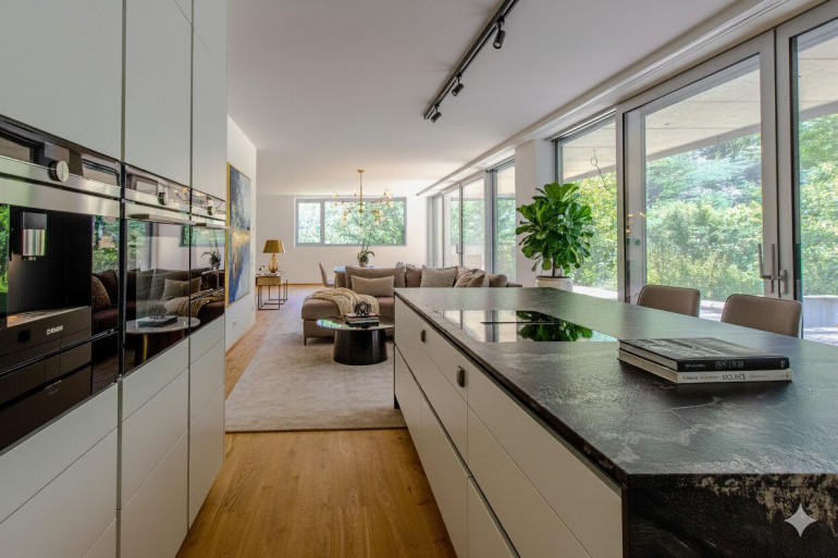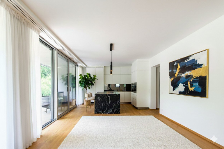 Großzügige Wohnbereiche: Loftartige, helle Räume mit hochwertigen Bodenbelägen und raumhohen Verglasungen schaffen eine einladende Atmosphäre