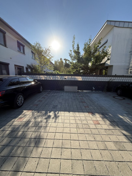 PKW-Stellplatz beim Hauszugang mit E-Steckdose (Zähler im Haus)