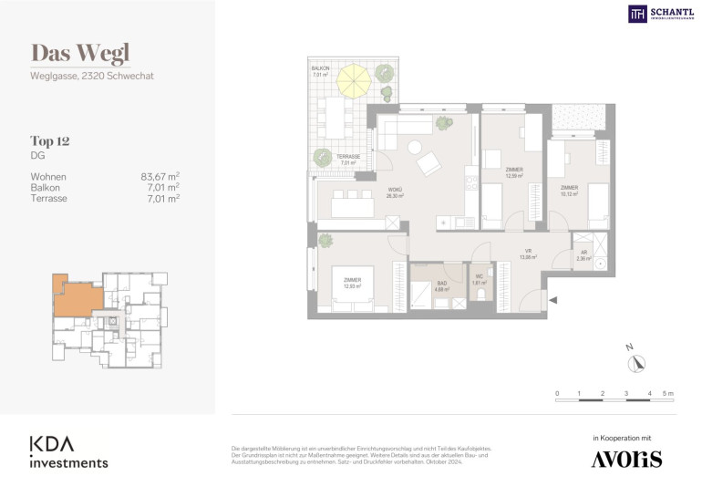 Wohnfläche: ca. 83,67 m² + Balkon/Terrasse: ca. 14,02 m² + Kellerabteil: ca. 2,30 m²