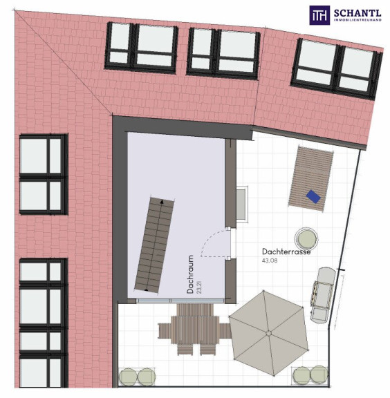 - direkter Zugang auf die beeindruckende Dachterrasse mit viel Platz für Lounge-, Ess- und Sonnenbereiche