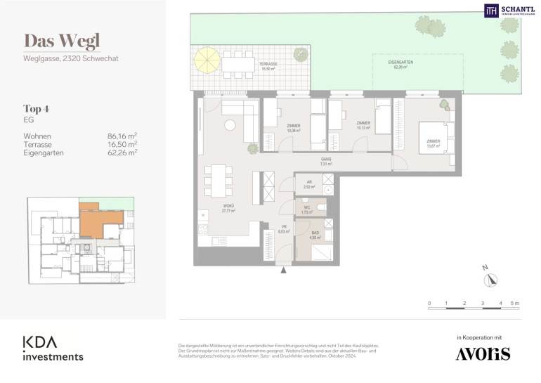 Wohnfläche: ca. 86,16 m² + Terrasse: ca. 16,50 m² + Garten: ca. 62,26 m² + Kellerabteil: ca. 2,55 m²