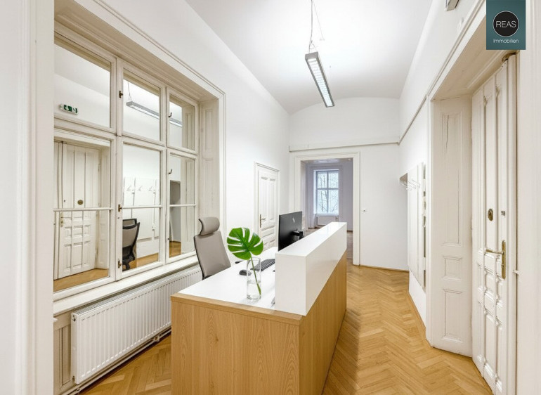 Das Büro befindet sich in einem wunderschönen und bestens gepflegten Altbau im 1. Stock inkl. Mezzanin (Lift vorhanden).