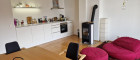 Wohnküche: Die Einbauküche von DAN bietet Ihnen genügend Stauraum und ist mit allen notwendigen Geräten (Siemens) ausgestattet, um auch größere Kochprojekte zu meistern. Sie bietet ausreichend Platz für einen Esstisch und eine gemütliche Ecke, um die wohlige Wärme des Holzofens zu genießen.