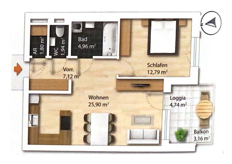Mit einer Fläche von 54,51 m² stehen Ihnen hier zwei lichtdurchflutete Zimmer zur Verfügung, die Ihnen Raum für individuelle Gestaltungsmöglichkeiten bieten. Genießen Sie den Komfort eines Erstbezugs, in dem alles neu und frisch ist. Die hochwertige Einbauküche ist der ideale Ort für genussvolle Kochabende, während der angrenzende Balkon und die Loggia Sie zum Entspannen im Freien einladen. Von hier aus genießen Sie einen atemberaubenden Fern- und Grünblick, der Ihnen jeden Tag ein Stück Natur näherbringt.