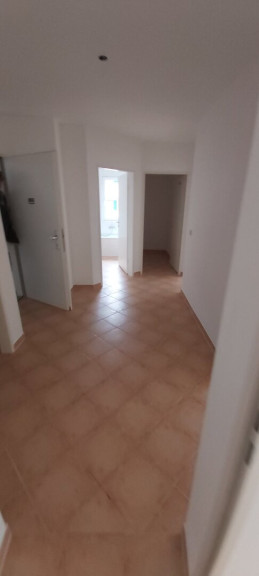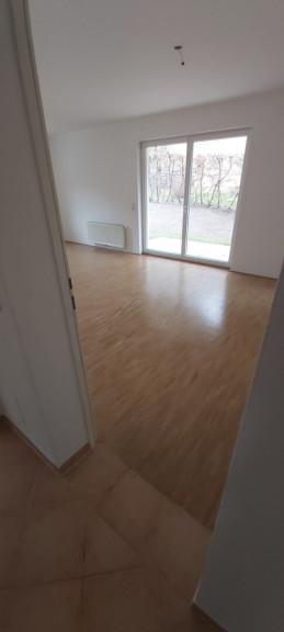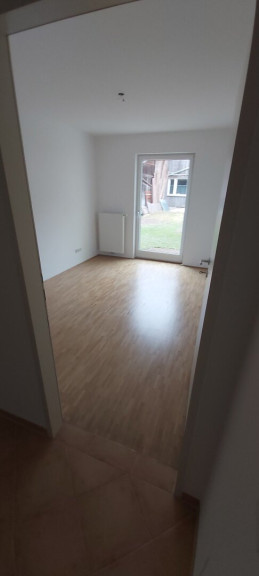 Über das Vorzimmer sind folgende Räume (Wohnzimmer, Schlafzimmer, Kinderzimmer, Badezimmer, WC, und Abstellraum) separat begehbar. In den Wohnräumen wurde ein Parkettboden verlegt. Das Badezimmer, WC und Vorzimmer ist mit Fliesen ausgestattet. Vom Wohnzimmer aus gelangt man zur Terrasse und in den Garten.