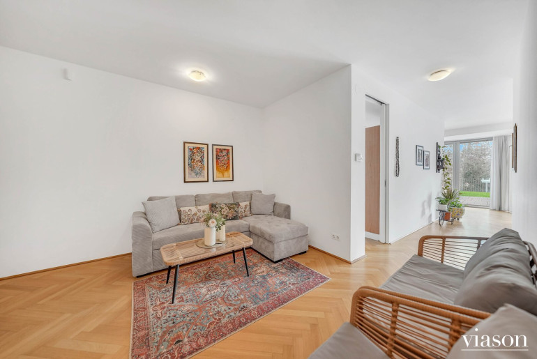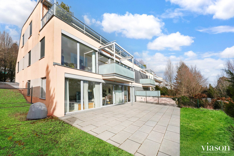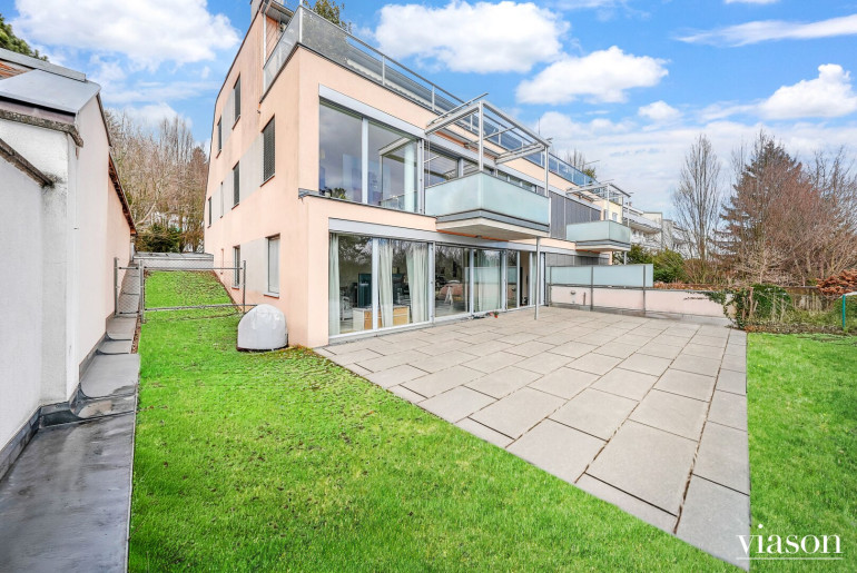 EXKLUSIVE GARTENWOHNUNG IN NEUSTIFT AM WALDE – WOHNEN MIT GRÜNBLICK FUSSLÄUFIG (ca. 3 Gehminuten) DER AMERICAN INTERNATIONAL SCHOOL