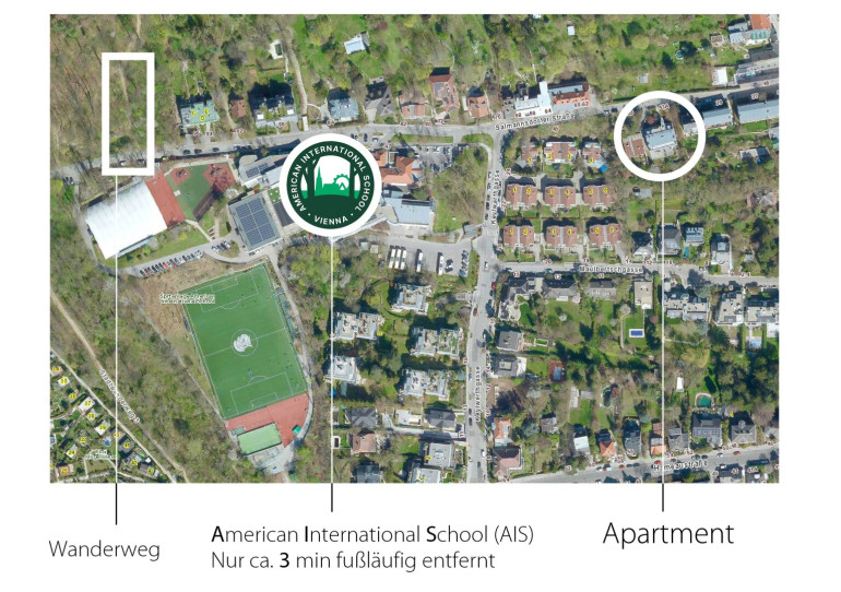 - NAHERHOLUNGSGEBIETE: Die Lage der Wohnung, in Neustift am Walde, ist sehr gut, die Wohnung liegt nur ca. 3 Gehminuten von der American International School Vienna und ca. 6 Gehminuten zum Waldrandweg und zu diversen Stadtwanderwegen entfernt. Die Naherholungsgebiete Salmannsdorfer Höhe, Schwarzbergpark, Pötzleinsdorf sind schnell erreicht.