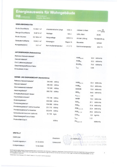 | Heizwärmebedarf: | B 32,00 kWh/m²a |