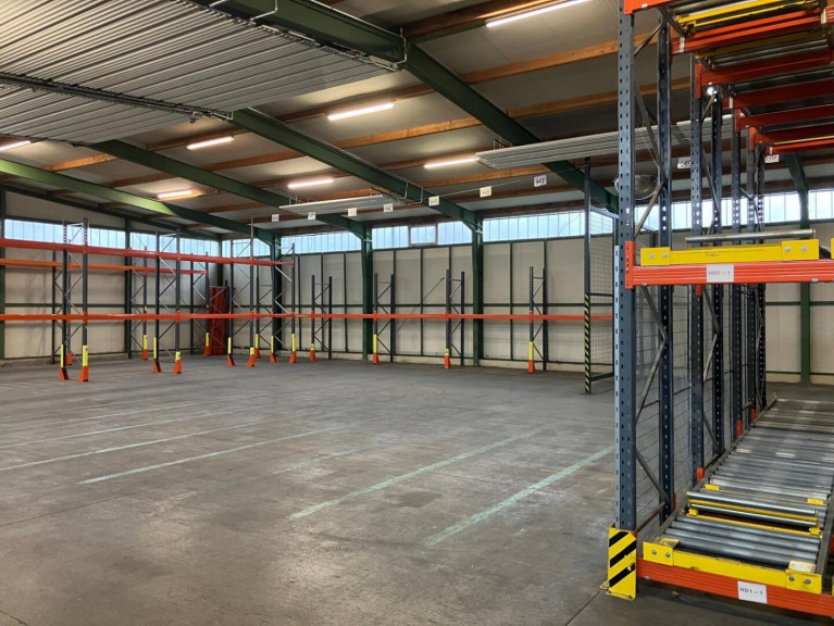 Auf Wunsch können Hochregale mit Rollen und ein Stapler mitgemietet werden.