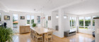 Der großzügige Wohn-, Ess- und Küchenbereich bildet gemeinsam mit funktionalen Nebenräumen das kommunikative Zentrum des Hauses.