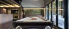 Gesellschaftszimmer: Durch das Wohnzimmer gelangt man in das Gesellschaftszimmer – ein Highlight für Geselligkeit und Unterhaltung, ausgestattet mit integriertem TV, Bose- und Teufel-Soundsystem sowie einem edlen 8-ft-Billardtisch auf Schieferplatte. Ein eingebautes Tisch-Ensemble rundet den Raum perfekt ab – ideal für einen geselligen Abend.