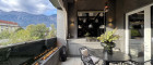 Loggia: Von hier aus betritt man die ca. 16,3 m² große, überdachte Loggia mit Gas-Ambiente-Feuer, integriertem Plancha-Grill und Lounge. Ein luftiger, geschützter Außenbereich zum Genießen lauer Sommerabende mit Blick nach Nordwesten und auf die Bergwelt.
