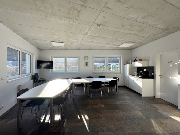 Die Innenfläche von ca. 192 m² gliedert sich in eine Werkstatt, zwei praktische Lagerräume, einen großzügigen Aufenthaltsraum, zwei Büroräume sowie zwei Sanitärbereiche. Die Raumaufteilung ist praxisorientiert und flexibel nutzbar. Ergänzend dazu zeichnet sich das Objekt durch eine moderne technische Ausstattung aus, darunter eine Photovoltaikanlage mit Speicher, Notstromversorgung, intelligente Zutritts- und Schließsysteme, Videoüberwachung und eine zentrale Fußbodenheizung – vieles bequem per Smartphone steuerbar.