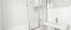 Badezimmer mit Dusche und getrenntes WC – modern, gepflegt und effizient gestaltet