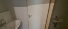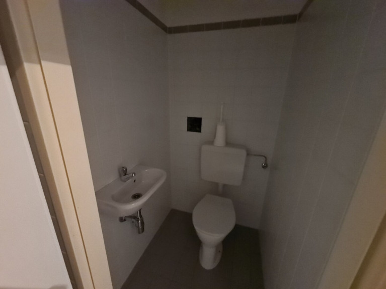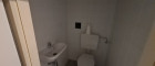 Toilette mit Waschbecken, Küche mit Einbauküche, großzügiger Abstellraum