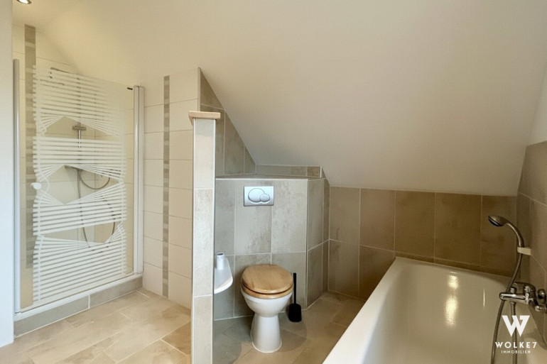 - 1 Badezimmer mit Dusche, Badewanne und WC