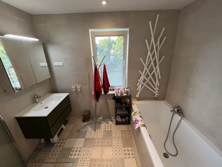 Im Obergeschoß des Wohnhauses befinden sich 2 sehr großzügige Zimmer, ein Büro bzw. Ankleideraum, sowie das sehr gepflegte, großzügige Bad mit großer Wanne und separater Dusche. Auch auf dieser Ebene befindet sich ein stilles Örtchen (inkl. Fenster).