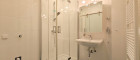 + Badezimmer mit Waschbecken, Dusche, Waschmaschinenanschluss und Sprossenheizkörper