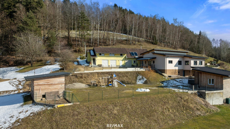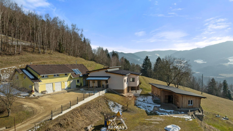 Auf einer Seehöhe von ca. 551 m – eingebettet in eine malerische Landschaft aus Wiesen, Wäldern und Bergen – bietet dieses außergewöhnliche Anwesen auf ca. 132.334 m² Fläche eine seltene Gelegenheit für alle, die sich Ruhe, Naturverbundenheit und modernen Wohnkomfort wünschen. Das Grundstück ist eine arrondierte, zusammenhängende Fläche mit eigener Zufahrt – ein wahres Paradies für Selbstversorger, Pferde- und Naturliebhaber.